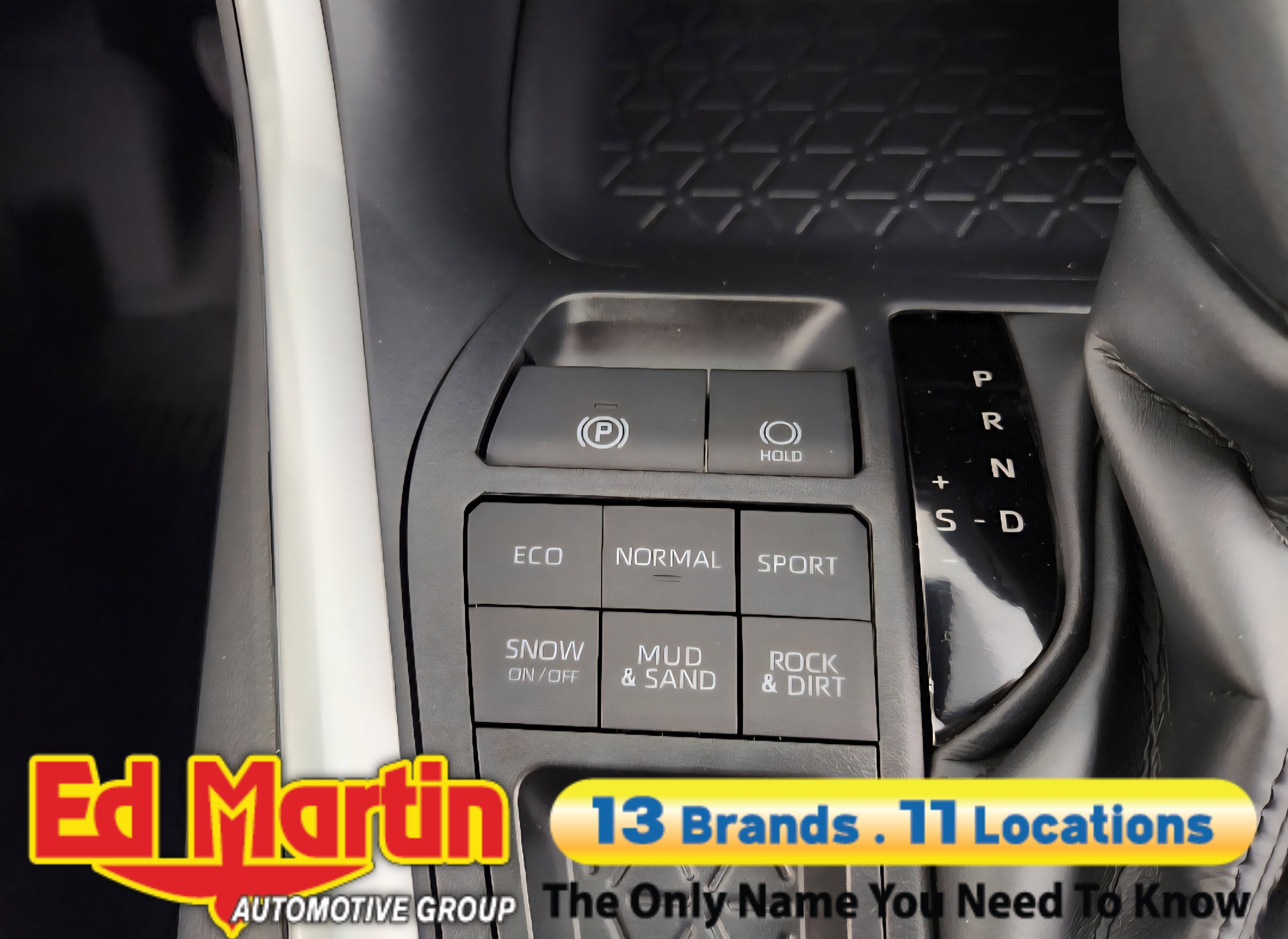 - Center console with covered storage compartment, two cup holders, drive mode, Multi-Terrain Select (MTS), Electric Parking Brake (EPB) and automatic Brake Hold controls, and front storage tray