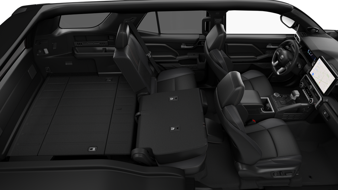 - 60/40 split, reclining and tumble-folding second-row seat with center armrest and cup holders