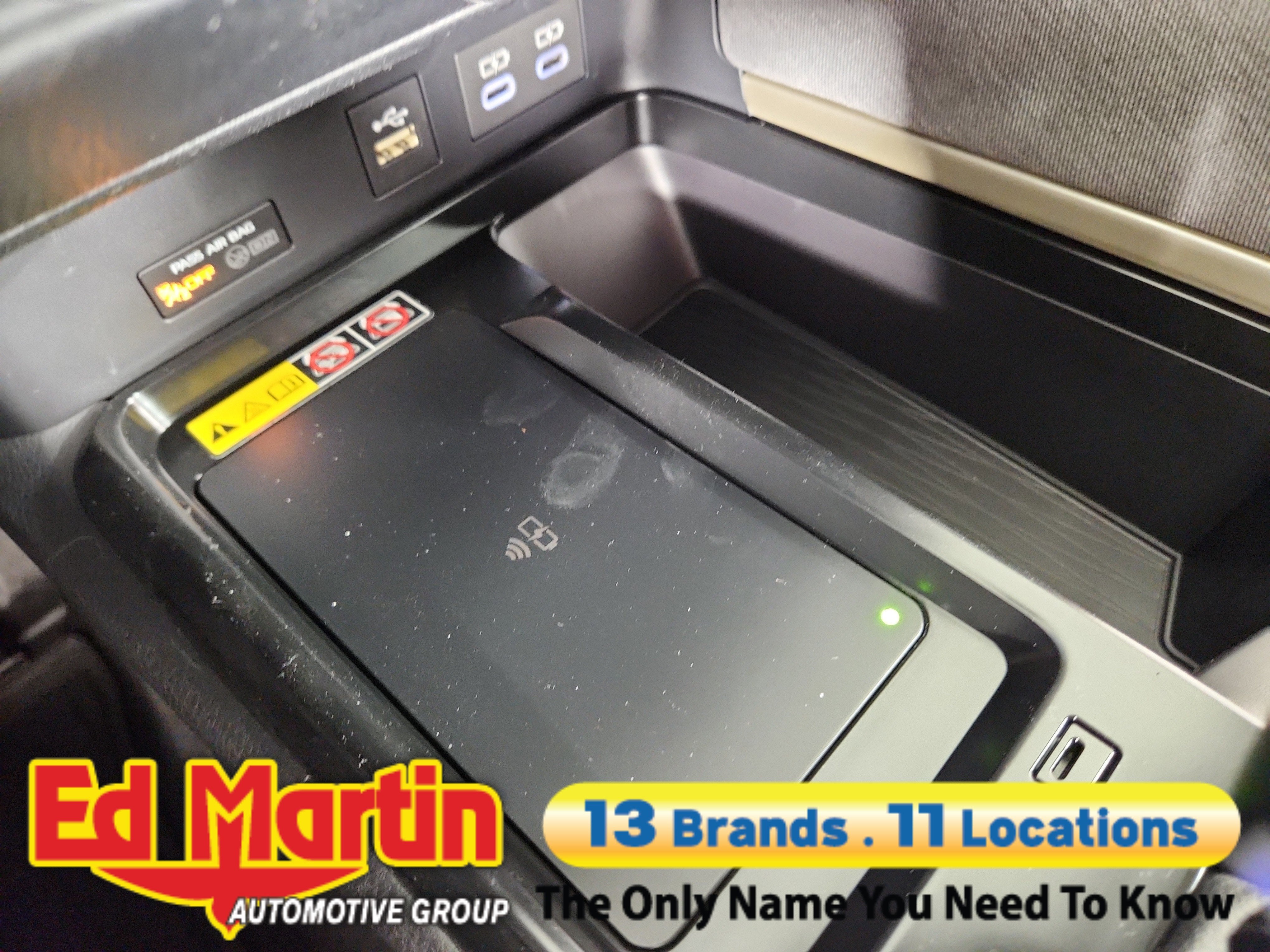 - Five USB ports: one USB-A media port and two USB-C charging ports up front, with one USB-A and one USB-C charging port in the rear