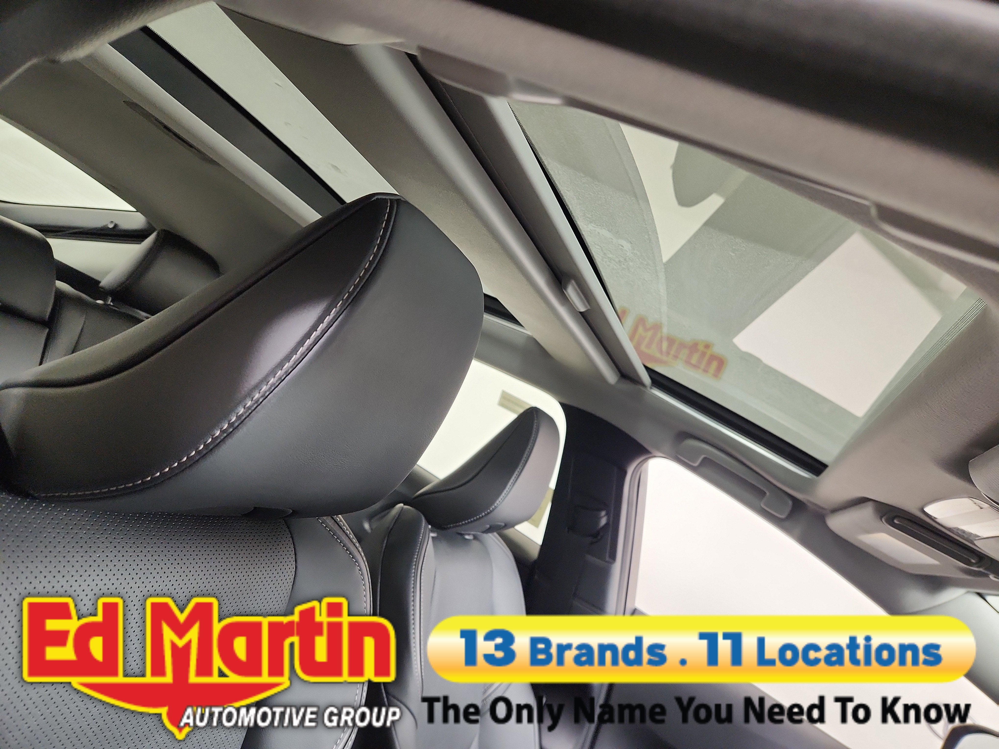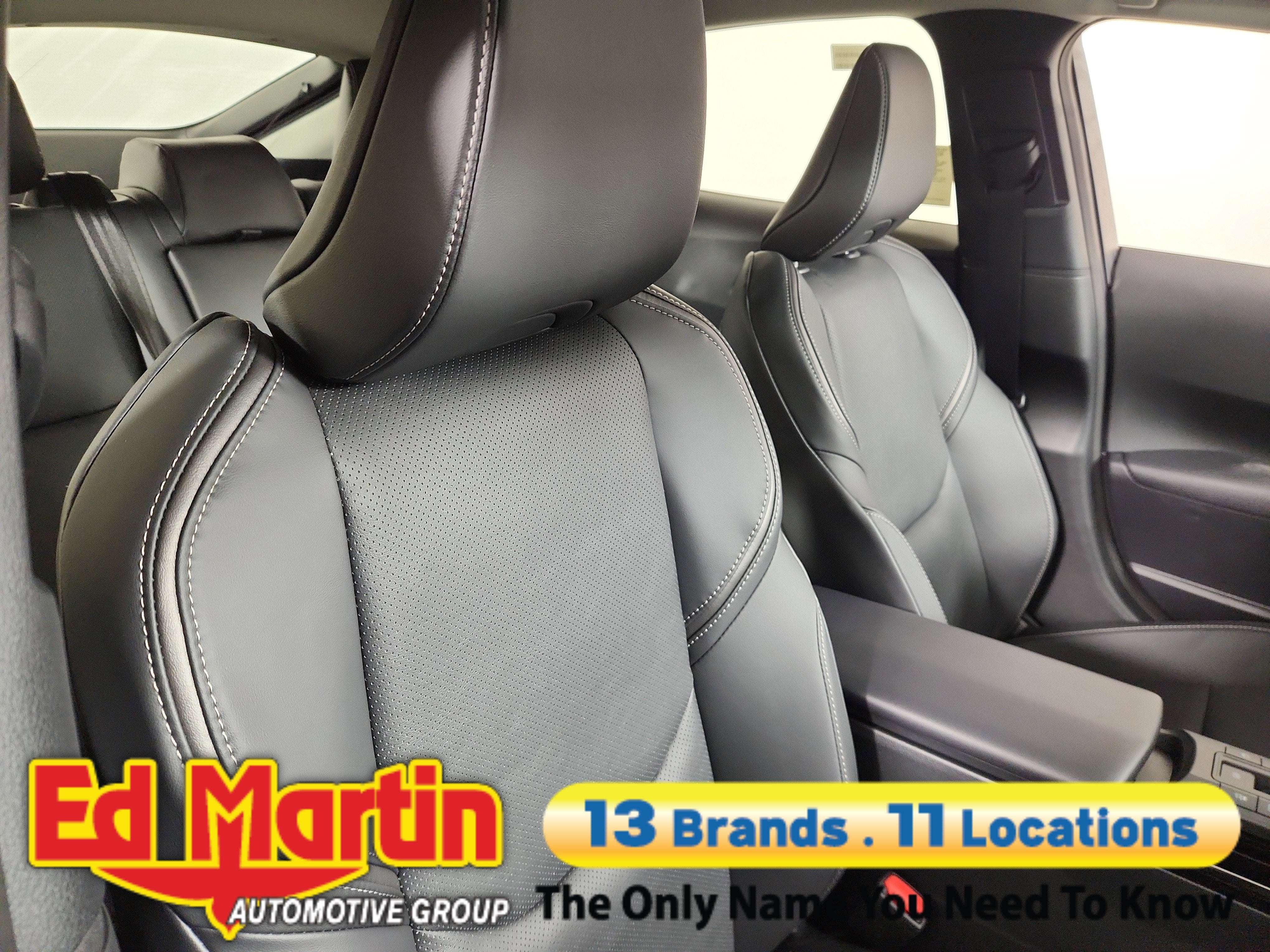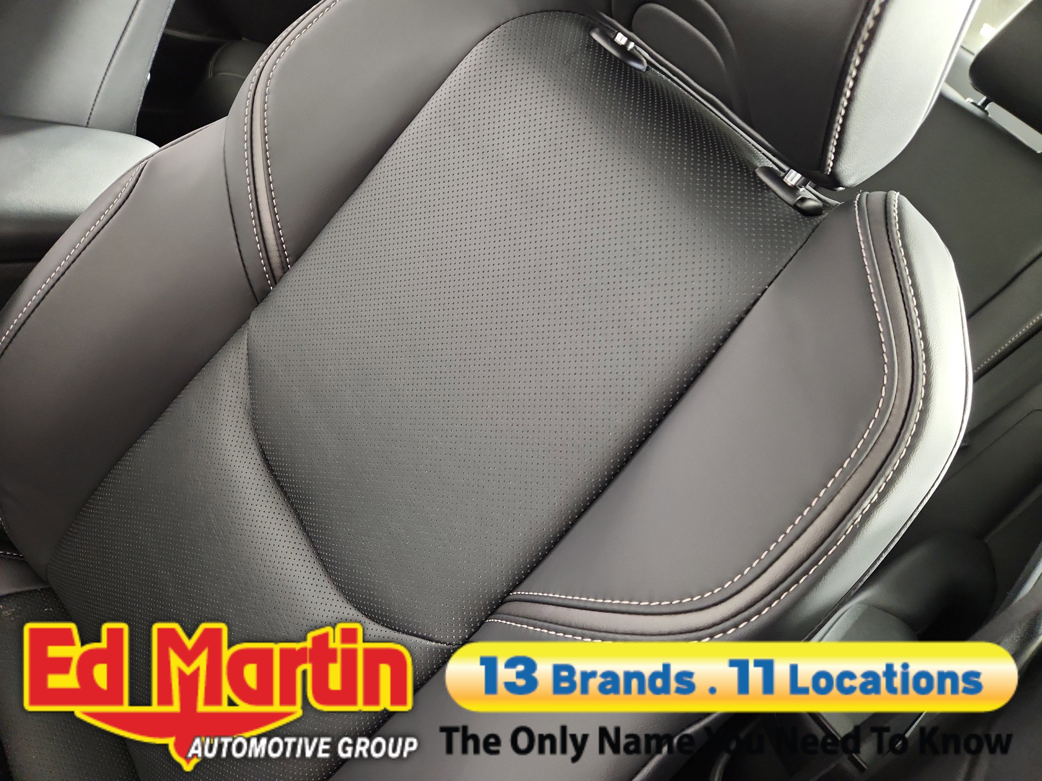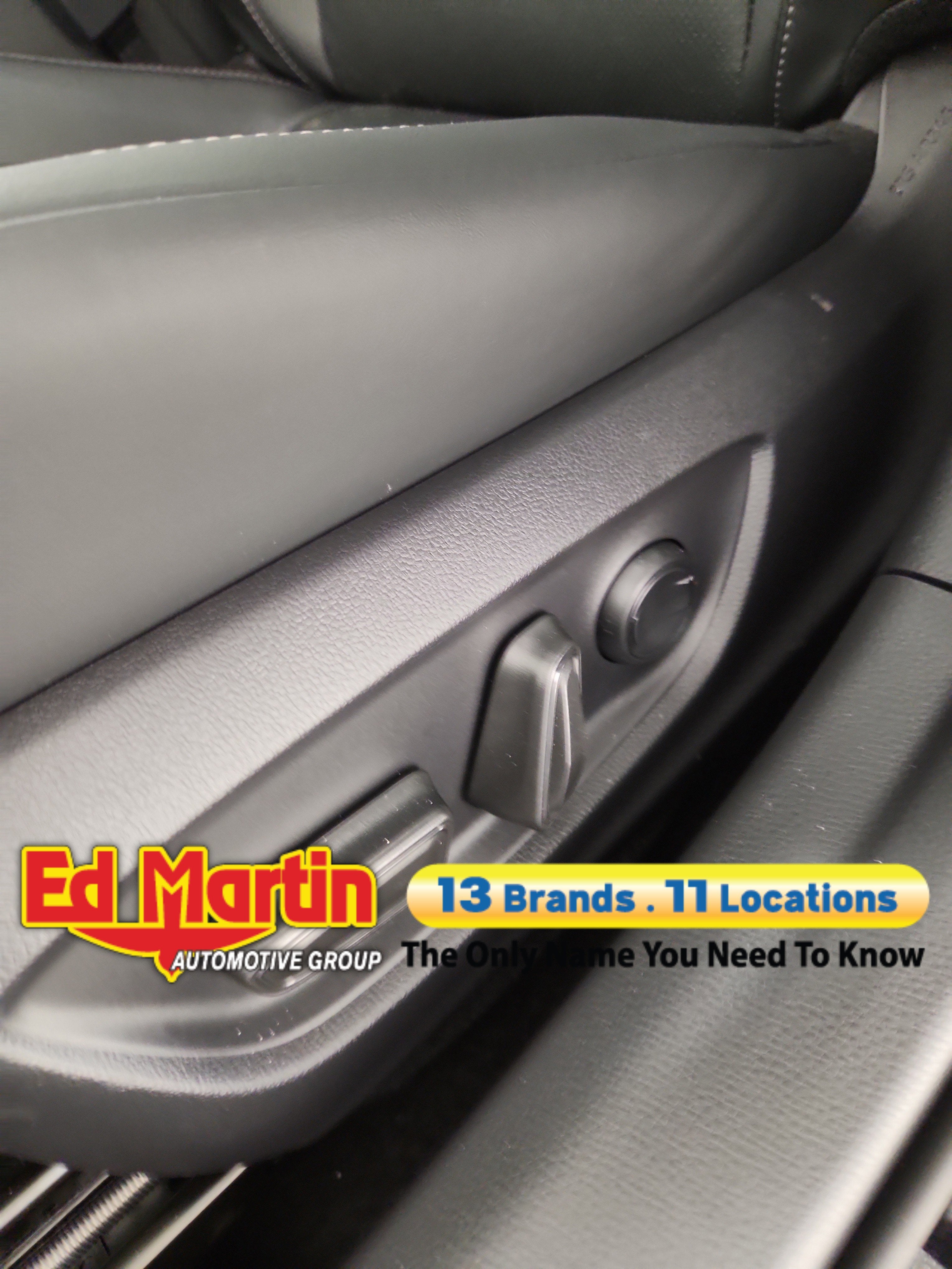 - Black with gray stitching SofTex®-trimmed front seats with seatback pockets; 8-way power-adjustable driver's seat including power lumbar support; 6-way adjustable front passenger seat