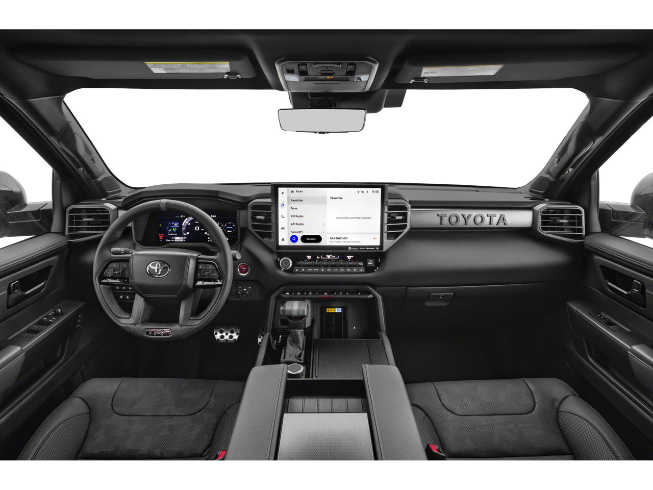 - TRD Pro "TOYOTA" heritage badge on passenger dashboard