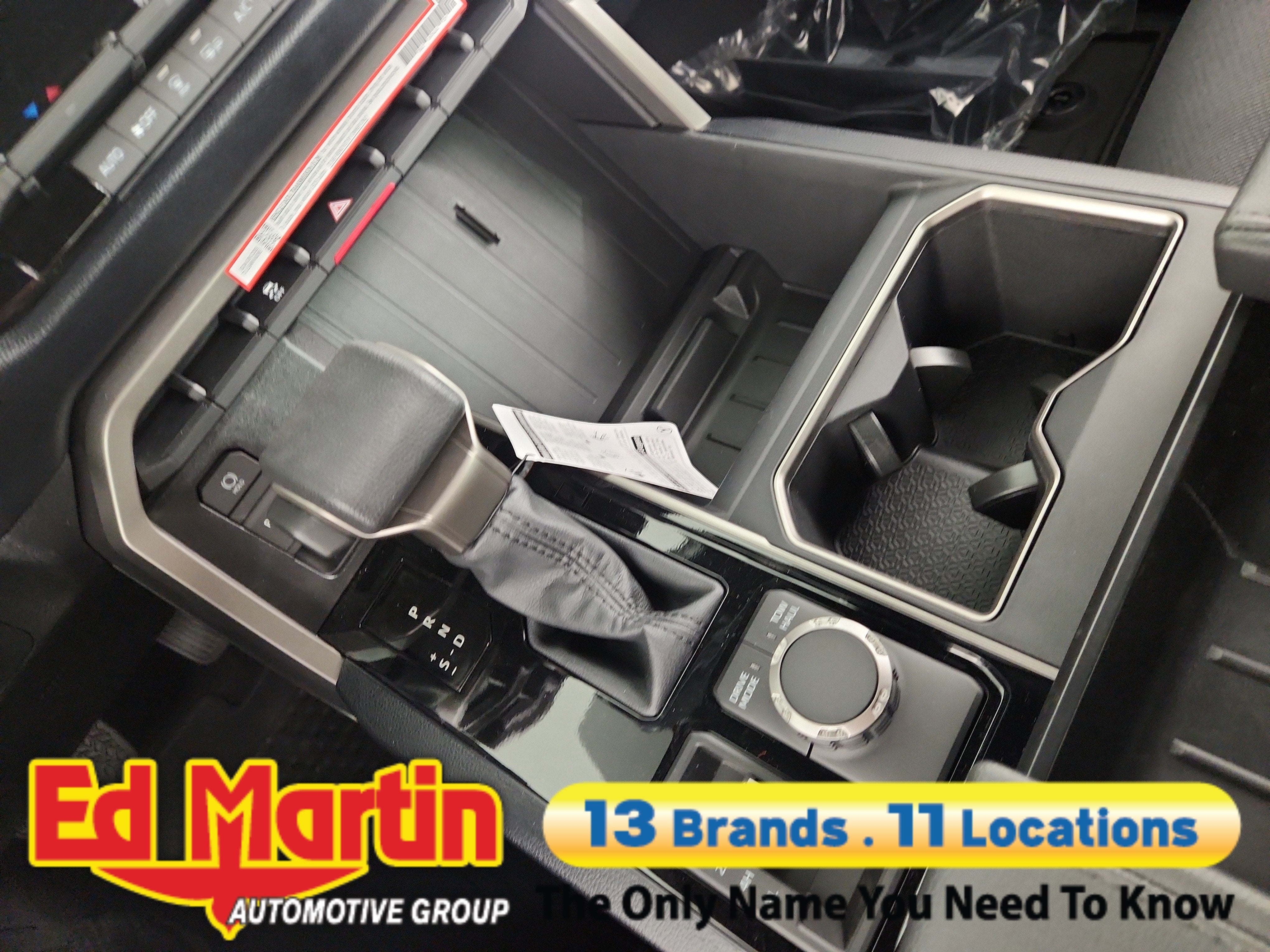 - Fixed center console with gated shift lever, driving controls, four cup holders, and center storage bin