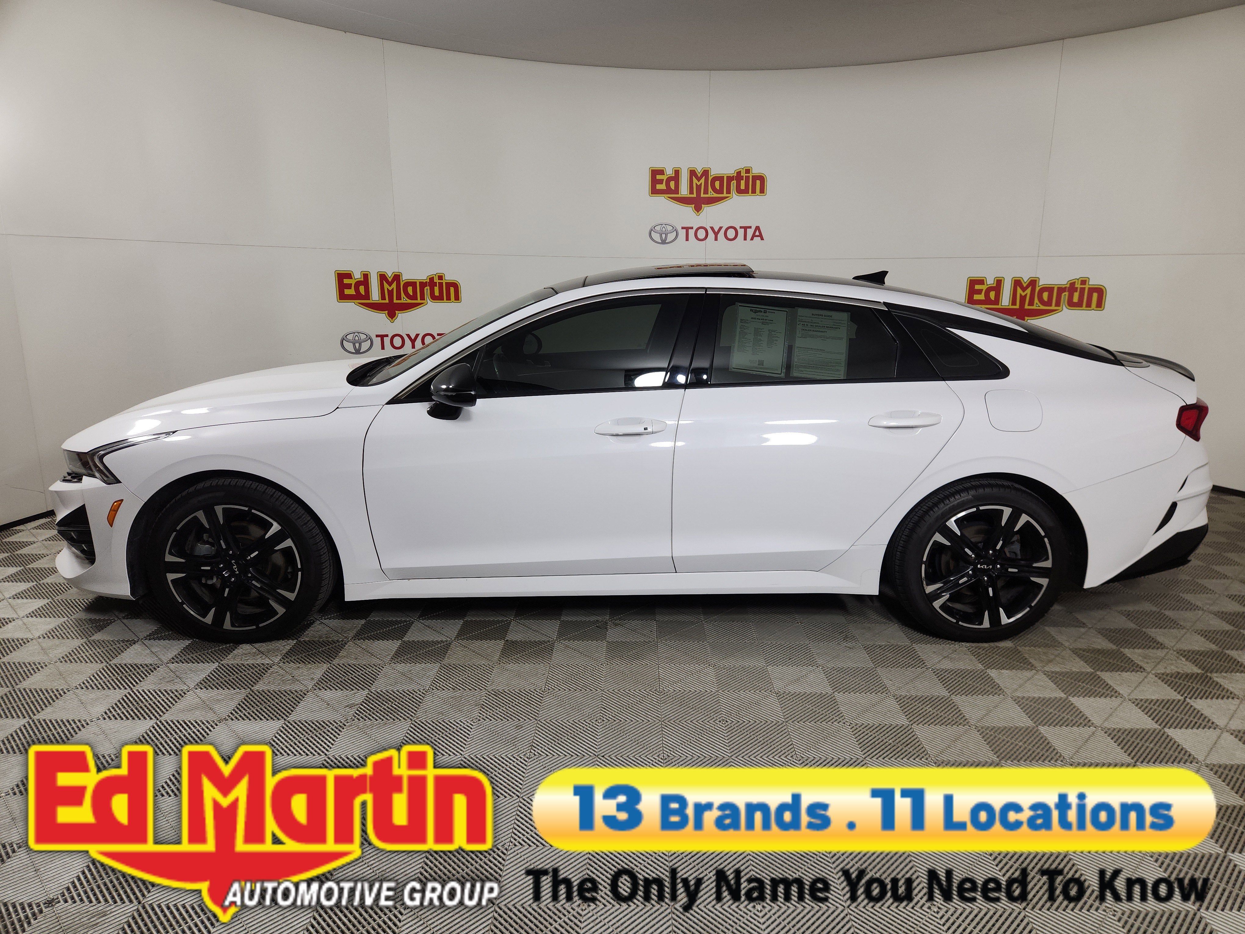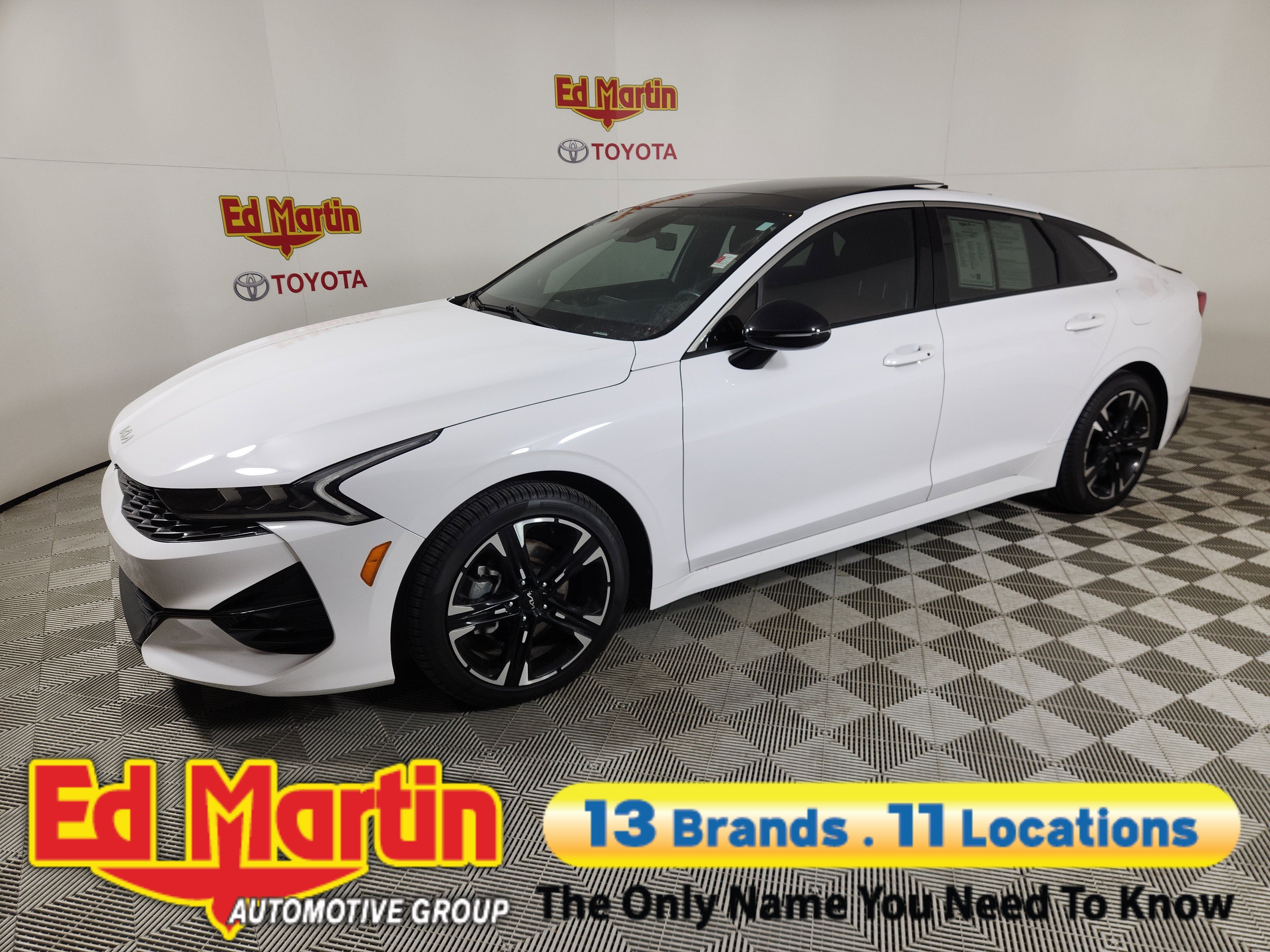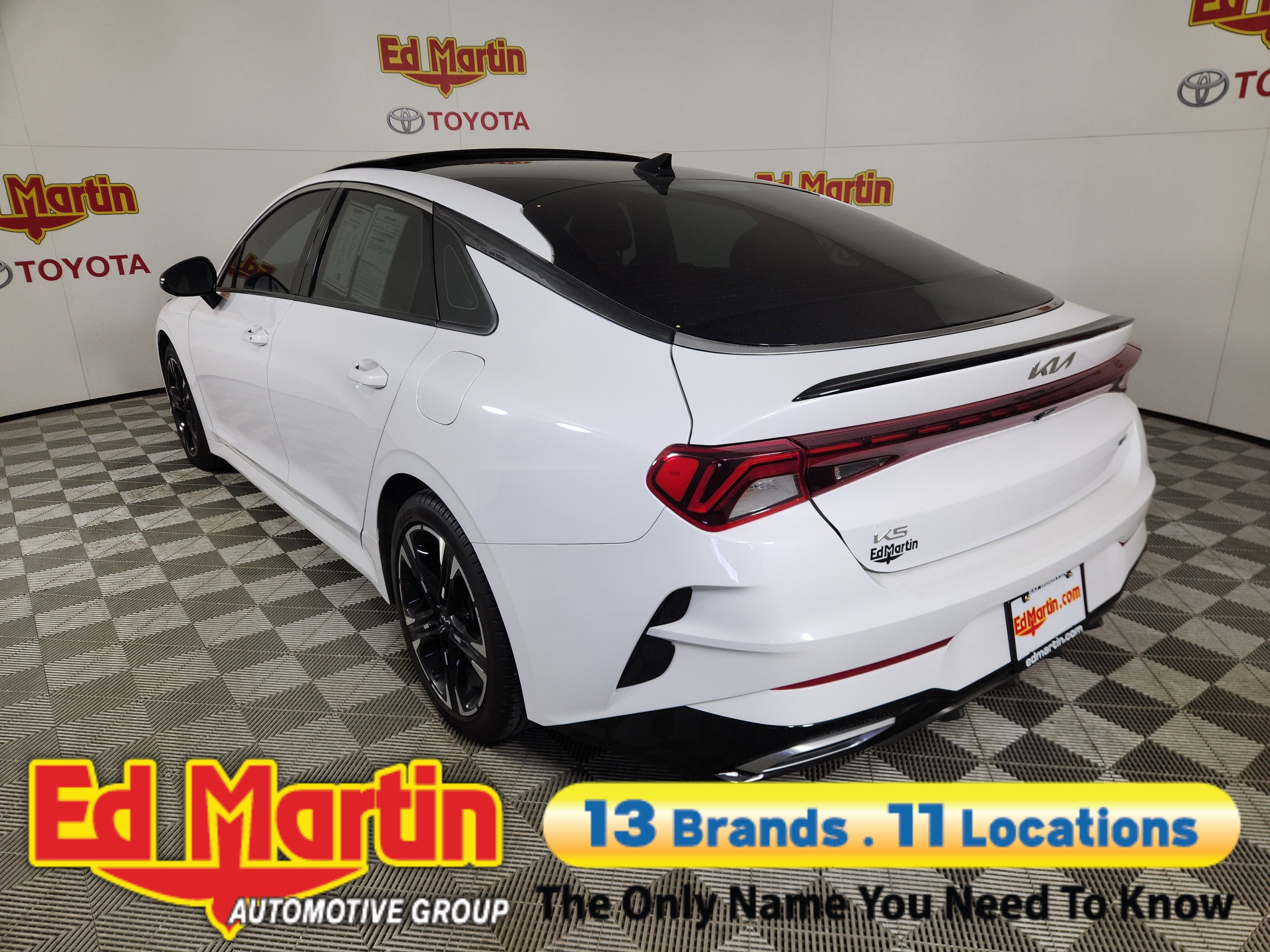 Discover the Epitome of Refined Sophistication: The 2023 Kia K5 GT-LineElevate your driving experience with the captivating 2023 Kia K5 GT-Line. This stunning sedan seamlessly blends exceptional performance, cutting-edge technology, and a refined, elegant design that will turn heads wherever you go.• GT-LINE PANORAMIC SUNROOF PACKAGE• GT-LINE PREMIUM PACKAGE• Glacial White Pearl ExteriorUnder the hood, the K5 GT-Line boasts a thrilling 1.6L I4 DGI Turbocharged DOHC 16V engine, delivering an impressive 180 horsepower and an exceptional fuel efficiency of 25 city/33 highway MPG. Paired with an 8-speed automatic transmission and all-wheel drive, this powertrain provides a dynamic and responsive driving experience, whether navigating city streets or conquering the open road.The K5 GT-Line's striking exterior is accentuated by its sleek, sculpted lines and bold, distinctive design elements. The Glacial White Pearl paint finish exudes a sense of refined elegance, while the GT-Line Panoramic Sunroof Package and GT-Line Premium Package elevate the vehicle's presence with features like LED interior lighting, a panoramic sunroof, and advanced safety technologies.Step inside the K5 GT-Line, and you'll be greeted by a cabin that seamlessly blends style and functionality. Enjoy the comfort of the sport-inspired seating, the convenience of the intuitive infotainment system with Apple CarPlay and Android Auto, and the peace of mind provided by the comprehensive suite of advanced safety features.Whether you're seeking a dynamic daily driver or a vehicle that will turn heads on the road, the 2023 Kia K5 GT-Line is the embodiment of refined sophistication. Experience the thrill of the open road and the confidence of cutting-edge technology – visit our showroom today and discover the K5 GT-Line for yourself.